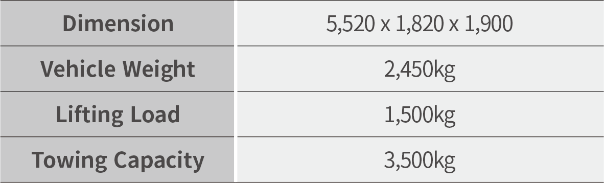 • Easy maintenance with body, loading box and towing bolt engagemen